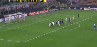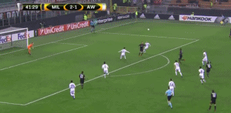 第36分钟,里卡多-罗德里格斯主罚前场右路任意球,他的大力平抽打入禁区,安德烈-席尔瓦机敏的将球断下距门10米处大力抽射破门!AC米兰2-1反超比分。