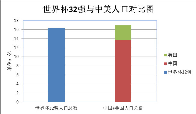 而另一个数据十分有趣:未能晋级世界杯的中国人口为13.79亿,同样被淘汰的美国人口为3亿2000万,相加的人口为16亿9900万。也就是说,中国和美国的人口总和,竟比世界杯32个国家相加还要多!这还没有算上排名世界人口排名第2和第4的印度和印尼,毕竟这两个国家对于足球运动的重视程度远不如中美。