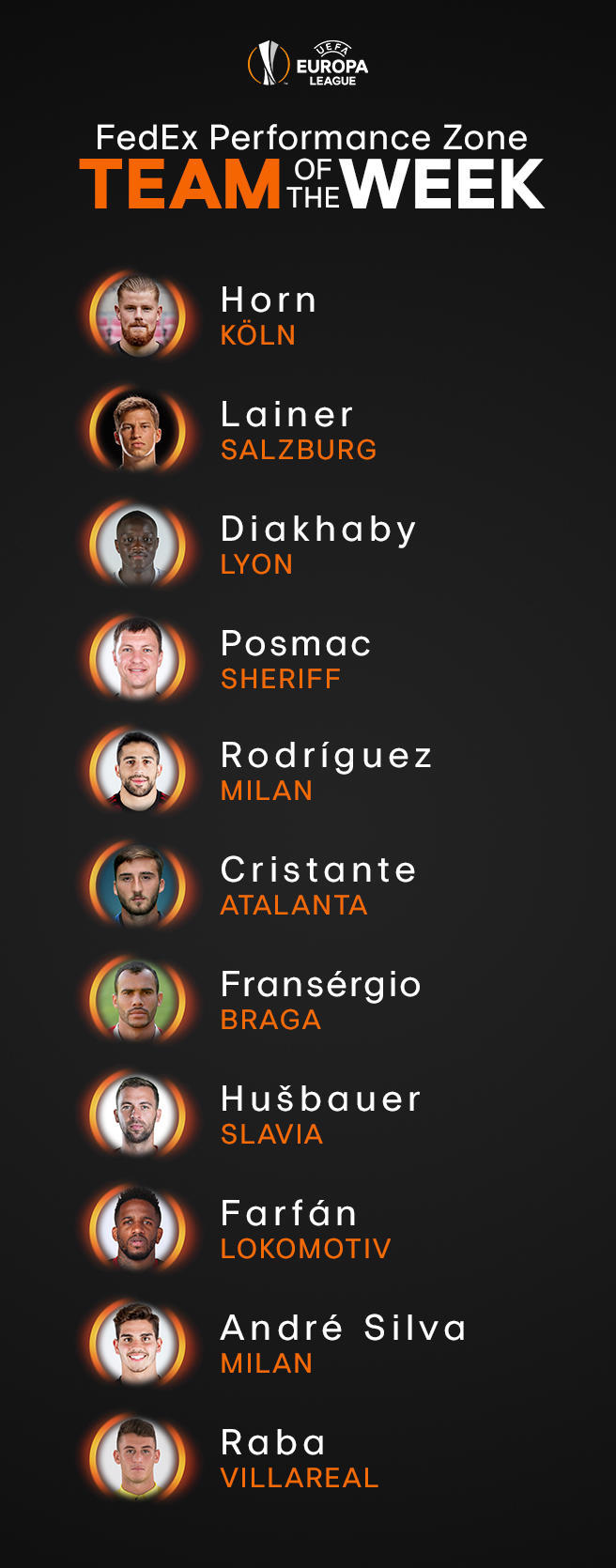 腾讯体育讯 北京时间11月24日,欧足联官方公布了本轮欧联杯最佳阵容,本轮取得大胜的米兰有A席和R罗两人入选,莫斯科火车头的秘鲁老妖法尔范如愿入围。