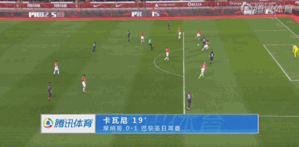 第19分钟,拉比奥特中路送出绝妙直塞球,德拉克斯勒禁区左翼低平球横传,卡瓦尼包抄捅射命中左上角,巴黎圣日耳曼1比0领先摩纳哥。