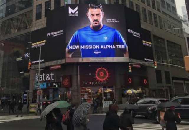 比利亚的形象出现在时代广场的广告牌上