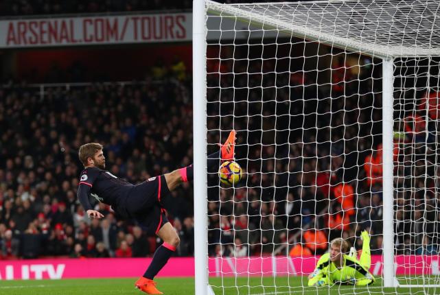 扎卡直塞,拉卡泽特反越位成功插到左侧底线接球,眼见哈镇门将洛斯尔站位靠近近门柱,法国前锋转身右脚搓射,吊过门将兜向球门远角,可惜在皮球入网之前被后卫及时解围。这种难度极高、观赏性很强的0度脚转身吊射,兰帕德、托马斯-穆勒等巨星都曾进过,拉卡险些进入同级序列。