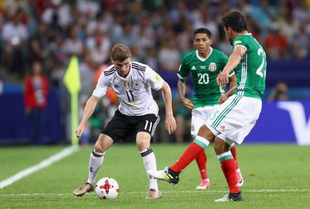 德国在世界杯赛正赛与墨西哥打过2场焦灼的淘汰赛,其中1998年1/8决赛尤其跌宕起伏:赫尔南德斯的进球几乎让墨西哥人看到了希望,草帽军领先后马特乌斯还解围击中门柱。最后20分钟克林斯曼捡漏、比埃尔霍夫金头逆转气走墨西哥。德国人对墨西哥作战向来具有心理优势,以至于今夏的联合会杯半决赛前,已成德国领队轻蔑地说:“我一点儿都不担心,因为我们总能战胜墨西哥。”