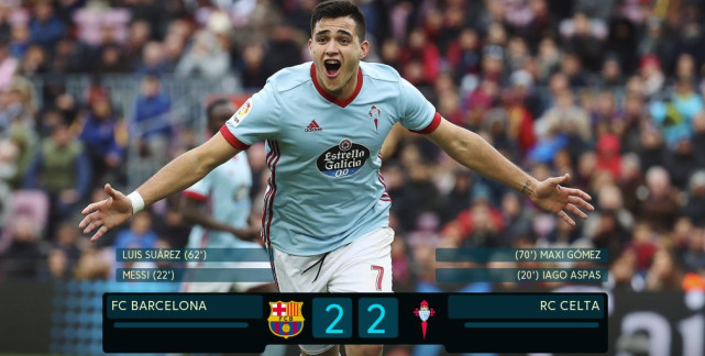 中超猎物进球,塞尔塔再次对巴萨抢分