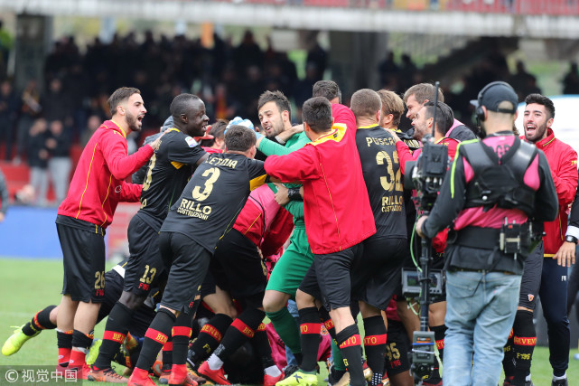 赛后,贝内文托队全队球员,和数千的球迷,像是夺冠一样庆祝,很多人都哭的五花六道。太不容易了,人见人欺的小球队,终于在这一晚创造了历史。但是换个角度来想吧:很少有人相信,贝内文托能够留在意甲,这不仅仅是因为他们距离“保级线”积分差距太多,更是因为贝内文托表现出的实力确实配不上意甲的舞台。但是即便贝内文托降级又如何?即便贝内文托可能下一次再打意甲遥遥无期又如何?以这样的神奇的方式,拿到第一个意甲积分,这样的贝内文托,将长久的留在世人的记忆中!很多很多年里,我们都会记得:2017年的12月3日,那支名不见经传的小球队,以那样一种神奇到无以复加的方式,赢得了第一个意甲积分!