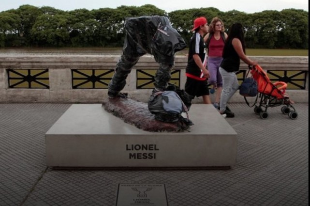 去年阿根廷队在美洲杯决赛中不敌智利后,梅西曾宣布退出阿根廷国家队。当时,阿根廷全国上下都在极力挽留梅西,布宜诺斯艾利斯更是为梅西建了一个雕像,然而这座雕像今天被人放倒了。