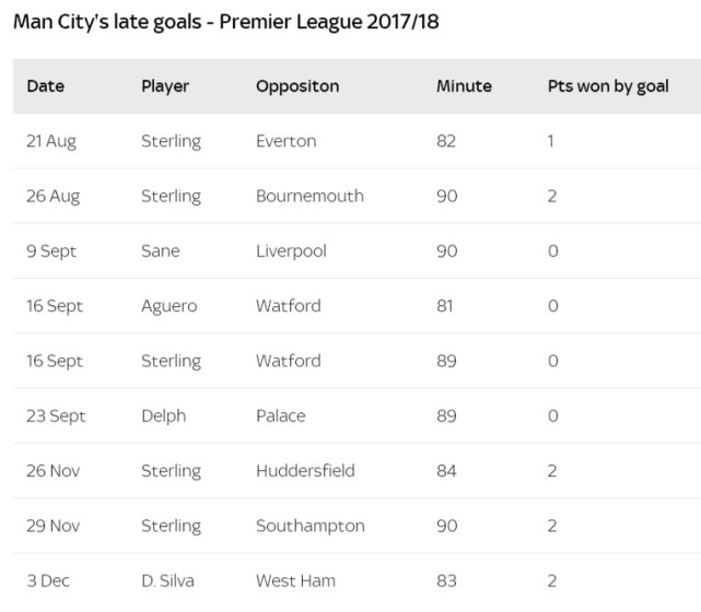 不过,曼城这9粒“绝杀”进球却含金量十足,除了过去3轮抢回了6个积分外,在8月份对埃弗顿以及伯恩茅斯时,斯特林先后攻进2粒绝杀球,分别把输球和平局变成了平局和胜利,也就是说,除了4粒锦上添花的“绝杀”进球没有改写胜负外,曼城9粒绝杀进球中有5粒进球抢回了9分!