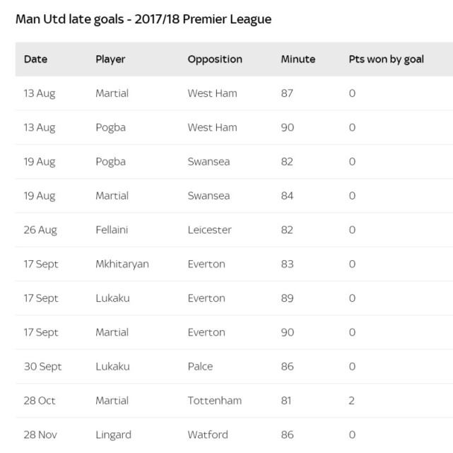 反观曼联,虽然曼联本赛季在第81分钟后的进球多达11粒,但只有10月28日对热刺时马夏尔的那粒进球才算得上是绝杀,而其他10粒81分钟后的进球都没能改写胜负,从严格意义上来说,那10粒进球也不能算是绝杀。