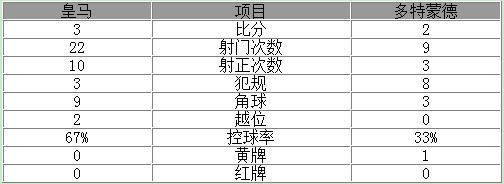 皇马全场控球率达67%,射门22比9领先,射正10次打入3球,进攻效率不错,不过多特仅3次射正便打入2球,皇马防线隐患重重。