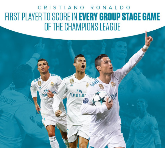 C罗6轮欧冠小组赛全进球,创历史纪录
