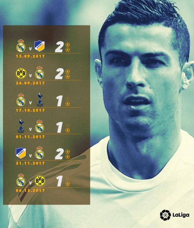 腾讯体育讯 北京时间12月7日,皇马击败多特蒙德,C罗创造新纪录,6场小组赛全破门,超内马尔皮耶罗等,成欧冠历史第一人。C罗欧冠6战9球,与巴萨全队进球数相同,C罗2017年欧冠19球,欧冠小组赛总计60球,同样是历史纪录,他也拿下皇马生涯第300胜,队史最快。