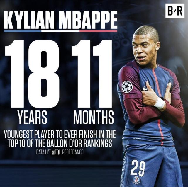 今夏姆巴佩以租借方式加盟巴黎,赛季末将被正式买断,转会费高达1.8亿欧元,足坛史上第二身价,仅次于内马尔的2.22亿。加盟巴黎后,姆巴佩与内马尔卡瓦尼组成恐怖锋线三叉戟,法国人本赛季联赛12战已贡献6球4助攻。整个2017年,姆巴佩欧冠打入10球,是年度欧冠进球第二多的球员,仅次于19球的C罗。姆巴佩也以18岁11月15天的年纪,成欧冠史上打入10球以上的最年轻杀手,超过当年20岁10月的本泽马,以及21岁3月的萨维奥拉,梅西、劳尔与鲁尼还要往后排。金球奖排名揭晓后,姆巴佩也成为史上最年轻跻身金球奖前10名的神童。
