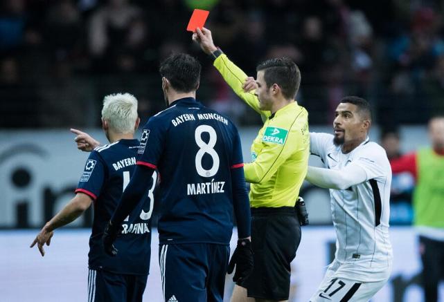 拜仁球员顿时勃然大怒,博阿滕等人冲过来就推搡沃尔夫,并与他大声理论,法兰克福球员也围拢过来,局面看起来就要失控。当值主裁判奥斯梅尔斯飞奔而至,向沃尔夫出示一张红牌。但即便如此,双方球员的对峙势头仍然一时之间难以消弭,仍在大声辩论。好在,阿拉巴、马丁内斯、托利索等人还算理智,将博阿滕拉开,避免了更大的武斗出现。