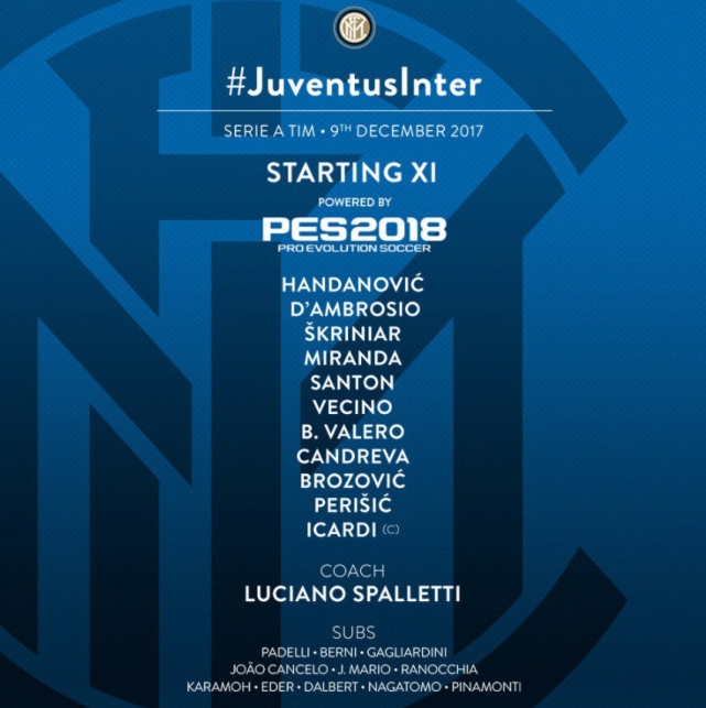 腾讯体育讯 北京时间12月10日3时45分,2017-18赛季意甲第16轮,尤文图斯坐镇安联竞技场对阵国际米兰。赛前两队公布首发阵容,布冯因伤缺席,迪巴拉担任替补,曼朱基奇、夸德拉多与伊瓜因组成锋线,博尔哈-瓦莱罗首发出场。