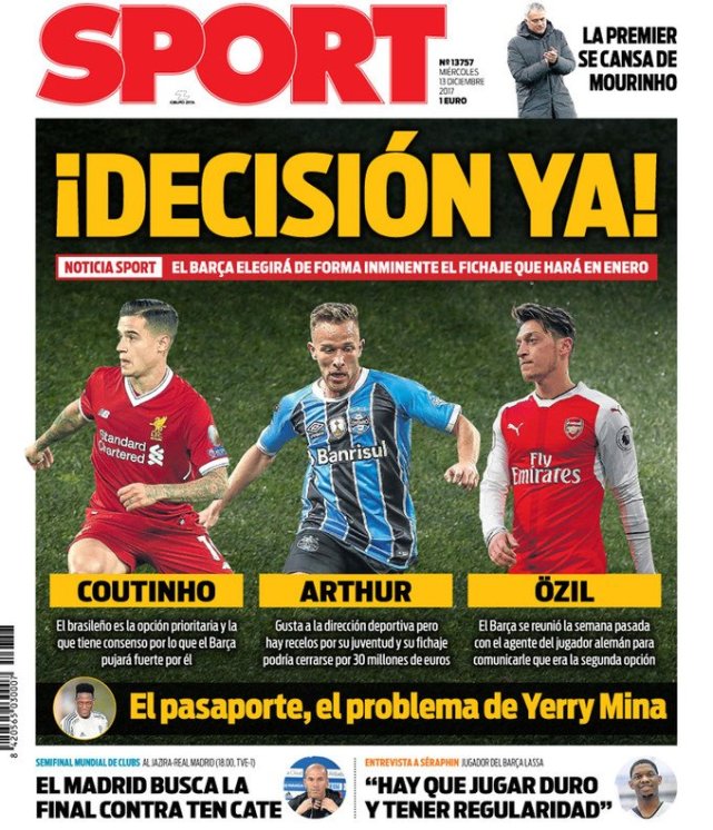 对于巴萨来说,目前在冬窗的选择只有三人,库蒂尼奥最贵,且签约难度也最大,而厄齐尔和阿图尔也是选择,巴萨高层需要权衡到底收购谁。