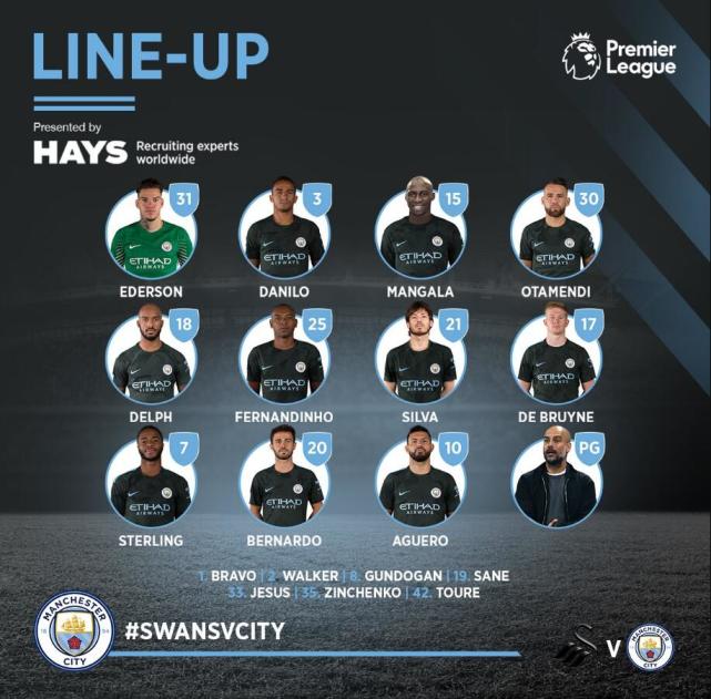 腾讯体育讯 北京时间12月14日3时45,2017-18赛季英超第17轮,曼城做客自由球场挑战斯旺西,双方首发阵容已经公布。