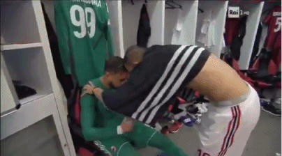 面对圣西罗全场指责,多纳鲁马这个大男孩的精神压力之大可想而知。他全场比赛表情呆滞,偶尔会露出痛苦的神色。好在这一刻,米兰队长博努奇尽显队长风范,他给了多纳鲁马一个拥抱,对他进行安慰。比赛结束后,加图索也用拥抱小门将的方式,表达着人道关怀。这样的安慰,显得温情脉脉。