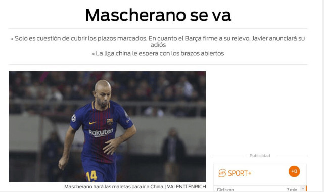 此前马斯切拉诺公开表态想离开巴萨,中超球队向他抛出了橄榄枝,巴萨也曾全力挽留这位功勋老臣,不过这位阿根廷国脚在巴萨的生涯恐怕已经走到了尽头,《每日体育报》表示,马斯切拉诺离队已经成为定局,他不会出现在下半赛季巴萨的阵容当中,巴萨已同意他冬窗转会离队,他收到了河北华夏幸福的报价。