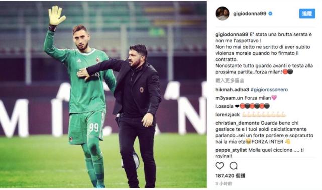 腾讯体育讯 北京时间12月15日 在昨天凌晨的意大利杯比赛中,AC米兰主场3-0击败了维罗纳,但是球队门将唐纳鲁马却遭到了主队球迷的攻击,今天凌晨唐纳鲁马打破了沉默,通过社交网络回应了米兰球迷的批评。