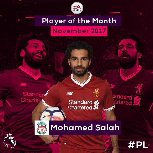 获得英超月最佳球员荣誉的是利物浦大腿萨拉赫,在11月份,他在四场英超比赛里打入了7球,在月最佳球员的评奖里,他击败了阿扎尔、德布劳内、斯特林、阿什利-杨等球员,生涯第一次拿到英超月最佳的殊荣,他也是历史上第一次拿到英超月最佳荣誉的埃及球员。目前萨拉赫在英超打入13球,在射手榜上领跑。萨拉赫在11月份也是收获不断,拿到了PFA月最佳球员的荣誉,又当选了BBC评选的非洲足球先生,此番又拿到了英超月最佳的荣誉。