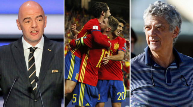 腾讯体育讯 北京时间12月15日 西班牙媒体今天报道了一条重磅消息:国际足联正在考虑调查西班牙足协违规事件,如果西班牙政府干涉足协指控成立,那么国际足联将会开出罚单,将西班牙国家队踢出明年俄罗斯世界杯。