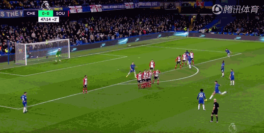 首先来看阿隆索的进球。上半场比赛伤停补时第3分钟,切尔西获得禁区前沿的任意球机会,虽然南安普敦非常谨慎的排好了人墙,但威廉虚晃一枪,阿隆索跟上左脚直接抽射,皮球绕过人墙钻入了球门左下角。福斯特本场比赛多次做出神勇扑救,但面对阿隆索的这次射门,他纵然扑对了方向也是无可奈何。