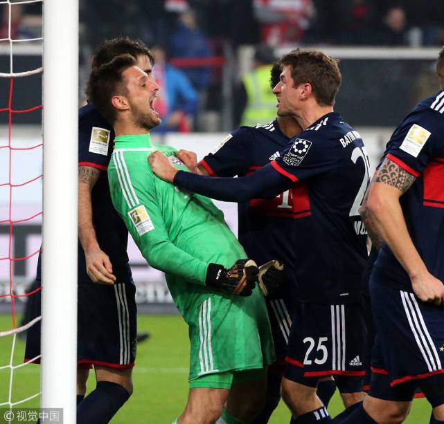 此时已经过了比赛时间,主裁判第一时间并没有判罚点球,也没有吹响终场哨,而在经过视频裁判的提醒之后,主裁判改判点球,这有引发了拜仁球员的不满,拉菲尼亚还因此吃到了黄牌。好在乌尔赖希封出了阿克洛主罚的点球,拜仁得以全取三分。