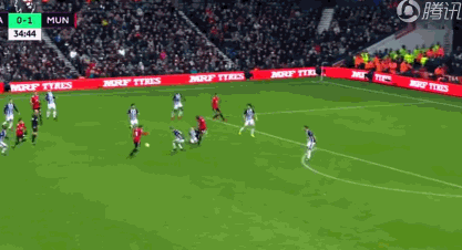 比赛的第27分钟,拉什福德左路传中落点极佳,卢卡库甩头攻门命中右上方的死角,曼联1比0领先西布朗维奇。