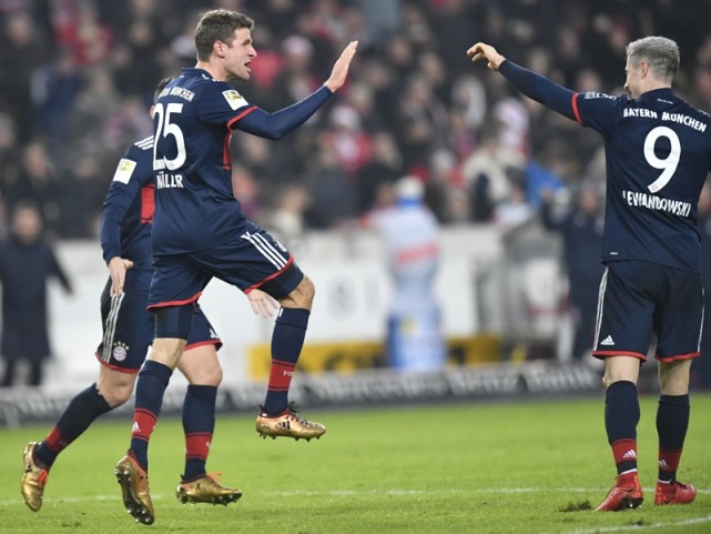 豪门赛况:拜仁慕尼黑凭借托马斯-穆勒的入球1比0小胜斯图加特,而多特蒙德则在落后的情况下由奥巴梅扬和普利西奇建功,2比1逆转击败霍芬海姆。