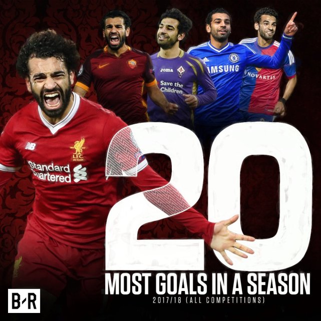 萨拉赫成为本赛季英超第一位在各项赛事打入20球的球员