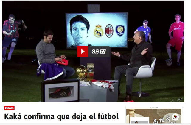 “在接受加尔旺采访时,卡卡透露尽管自己受到了圣保罗和米兰继续踢球的邀请,但他还是希望成为一名管理者。来到我们搭建的舞台上时,他穿了一件简单的球衣,而正是这件球衣让他被全世界所认识。现在,他已经不再是一名职业球员了,卡卡退役了。”