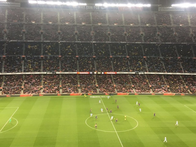 尽管半场结束前苏亚雷斯射门造成的门线争议,让全场球迷将嘘声献给主裁判,这嘘声一直持续到了半场结束,但下半场刚开场,苏亚雷斯接到罗贝托的传中打入真正意义上的第二球过后,诺坎普重新回归欢快的节日气氛。