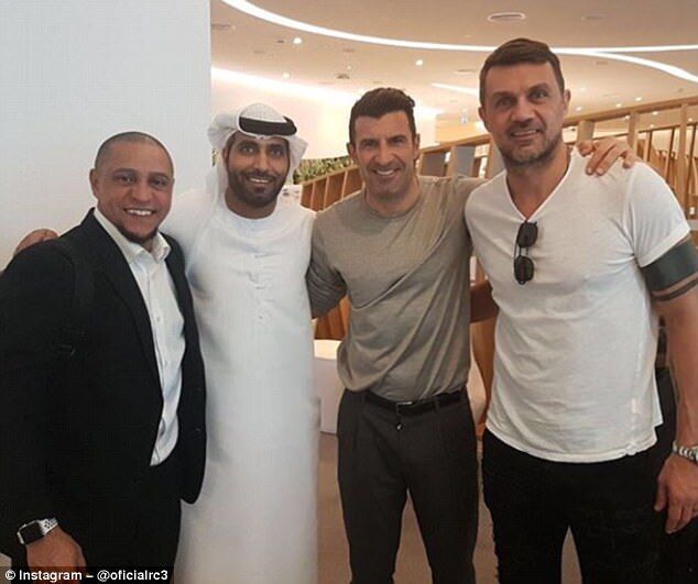 罗伯特-卡洛斯和菲戈、马尔蒂尼也有亲切的合影,巴西后卫还写道,“早上好,今天有这么多的天才,我的老师马尔蒂尼,我的朋友和最好的兄弟菲戈,还有我在迪拜的好朋友。”看起来,卡洛斯也对可以和这名多的朋友重逢感到惊讶。