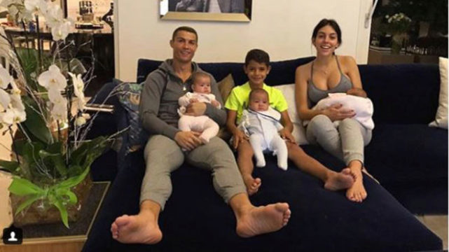 拥有一对双胞胎后,C罗就经常晒出全家福