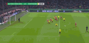第3分钟,穆勒边路传中,比达尔插上飞身甩头攻门击中横梁弹出!多特逃过一劫!