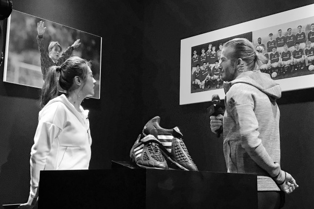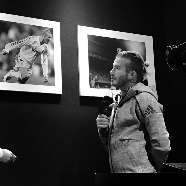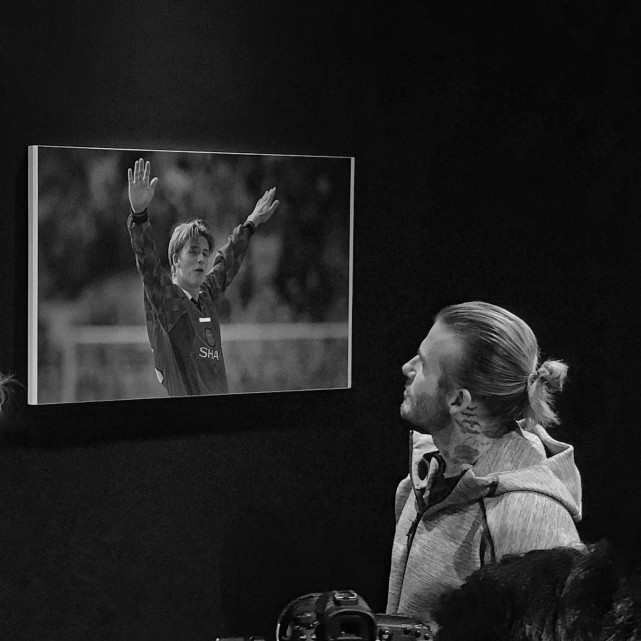 活动现场为贝克汉姆搭建了一座小型足球博物馆,大量的照片记录着“老贝”当年在曾经效力过的豪门留下的辉煌历史,此外还有不少在国家队中具有里程碑意义的瞬间,让人仿佛置身于历史的漩涡中,贝克汉姆本人也恍惚了,在光影间陷入了深深的沉思。