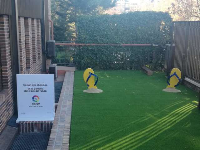 与想象中的不同,西甲联盟的总部外墙是用红砖砌成的,内院的长满爬山虎的栅栏墙下面摆放着一个雕塑作品,旁边的西甲标志上写着:“这不是一双拖鞋,这是未来目标的开端。”简单而别致,印有西甲logo的地毯和杯子垫、草皮造型的备忘录,处处彰显着西班牙人的设计品味。记者作为常驻意大利记者曾多次往返意甲联盟,那里还停留在80年代的政府机关模样,留下的印象永远是冗长的会议和没完没了的政治扯皮,而这里不同,散发着朝气。