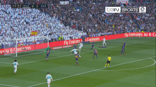 贝尔半场休息开始热身,但齐达内迟迟不愿换人改变打法,哪怕54分钟皇马就0-1落后。直到64分钟卡瓦哈尔被红牌罚下,梅西罚中点球后,齐祖才动用首个换人名额,还是用纳乔替下本泽马,补足防线人数。直到72分钟,齐祖才下了背水一战的决心,贝尔与阿森西奥出场,改打4221阵型。