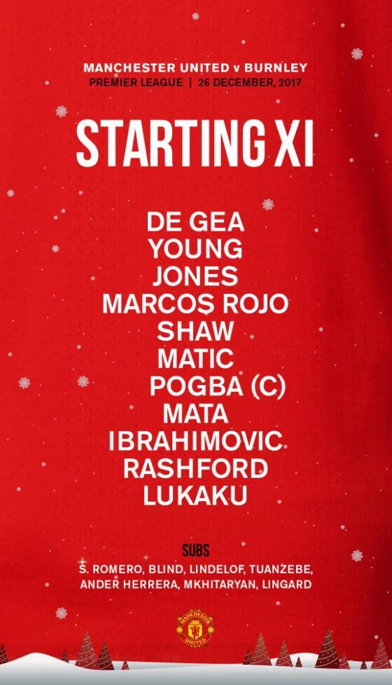 腾讯体育讯 北京时间12月26日晚23时(英国当地时间12月26日下午15时),2017-18赛季英超联赛第20轮,曼联坐镇老特拉福德球场迎战伯恩利。腾讯体育将为您带来本场比赛的视频直播,赛前双方首发及替补名单公布。