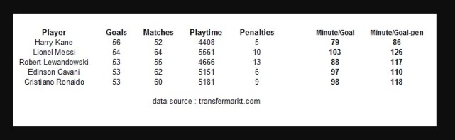 整个2017年,凯恩参与的比赛场次要远少于被他超越的梅西、C罗、莱万多夫斯基等人。凯恩这一年一共踢了52场比赛,梅西则踢了64场比赛,而莱万多夫斯基55场、C罗60场和卡瓦尼62场,在这五人中,凯恩是唯一一位场均进球数超过1球的球员。要知道,相比于其它联赛,在具有更高强度快节奏的英超联赛下,凯恩能取得如此的成就实属不易。