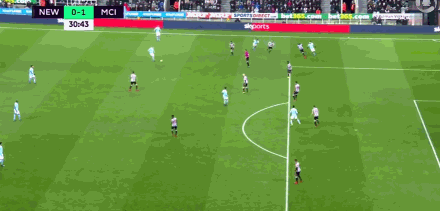 第54分钟,京多安前场抢断带到禁区前右脚低射,埃利奥特倒地救险。第56分钟,德布劳内与热苏斯打出踢墙配合插入禁区左脚低射将球打偏。