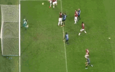 第98分钟,库特罗内禁区内转身打门被什克里尼亚尔舍身封挡。第104分钟,苏索右路传身后,库特罗内反越位插上在点球点处单刀推射破门!AC米兰1-0打破僵局,库特罗内脱衣庆祝染黄。