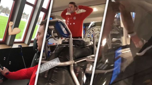 诺伊尔在社交网络上晒出自己在跑步机上训练的照片,sport1称:“诺伊尔进入全新的康复阶段,虽然世界冠军门将只能慢慢地在跑步机上行走,但这是他9月份受伤以来,第一次未在拐杖的帮助下行走。”