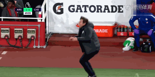 孔蒂在场边急得直捶地