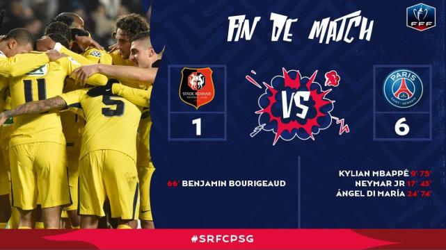 在对手打入1球之后,巴黎又打起了精神,迪马利亚、姆巴佩各入一球,帮助巴黎以6比1取胜。此役取胜之后,巴黎延续了3项纪录。首先,在法国杯、联赛杯两项赛事,巴黎已经34场保持不败,而在法国杯64强战,巴黎已经连续28次晋级,上一次被淘汰还是在1989-89赛季被瓦朗谢纳淘汰,同时,巴黎在法国杯已经连续19场取胜,上一次告负还是在2014年1月22日负于蒙彼利埃。