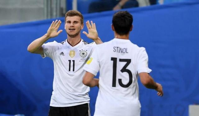 首先,在勒夫的战术预案里,强力中锋本来就不是必选项。通过最近一年半的实战观察,拥有速度优势且进球率颇高的莱比锡RB新星蒂莫·韦尔纳已基本锁定主力中锋位置。去夏联合会杯上,年仅21岁的韦尔纳以3球2助攻的表现赢得金靴奖。此后,他在对阵捷克与挪威的世预赛也连续进球。加上去年11月主场2比2打平法国的友谊赛破门,这位上赛季德甲本土射手王已经证明了自己并非只会虐菜。自2016年夏天加盟莱比锡以来,这位斯图加特青训球员不仅继续发扬了速度优势,而且在处理单刀球、头球、配合与无球能力等方面取得了长足进步,展现出极强的可塑性。