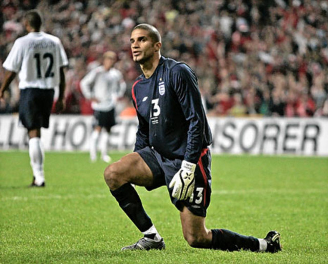 当然,我辈球迷记忆最深刻的是2002年世界杯,英格兰与巴西的大战,罗纳尔迪尼奥诡异的任意球直接破门至今让人津津乐道,只是这个进球同样与门将的尴尬牢牢记在一起。大卫-希曼明明守在皮球飞向的那个死角的立柱边上,但皮球飞行了数十米的时间,他甚至无力退后2步完成扑救,只能“回头望月”。英国媒体嘲讽“大本钟的时针都比他移动更快”,世界媒体对这个球的评价都是:小罗羞辱希曼。是的,全世界媒体用的词汇,翻译过来都是一个意思:羞辱。多残酷的字眼!