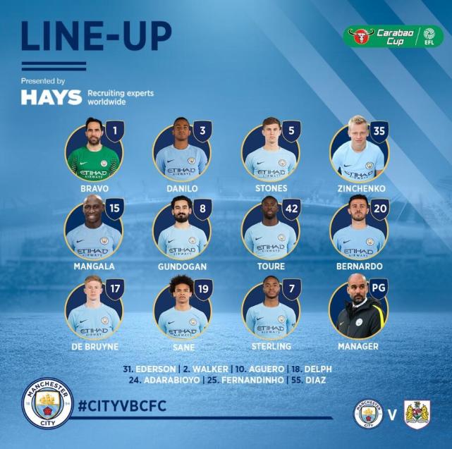 腾讯体育讯 北京时间1月10日凌晨3点45,2017-18赛季英格兰联赛杯半决赛首回合,曼城坐镇伊蒂哈德球场迎战布里斯托城,双方首发阵容已经公布。