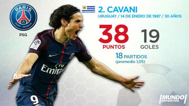 过往赛季,法甲的积分系数是1.5,但是本赛季已经成为了2.0,这让卡瓦尼、内马尔等人受益,本赛季,乌拉圭人卡瓦尼在18场法甲打入了19球,目前是法甲第一射手,而他的积分达到了38分,位居第2位。