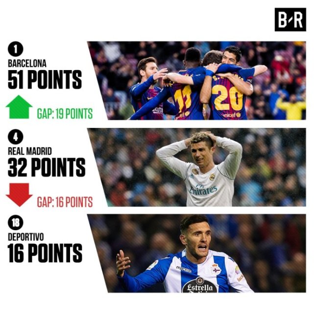 齐达内在赛后仍然嘴硬,“我们仍然在所有赛事中保持竞争力”,但是两家皇马喉舌今天同时发表文章指出:“你们距离降级区更近。”根据规则,西甲联赛最后三名将降入乙级联赛,目前倒数第三名拉科鲁尼亚积16分,皇马只比降级区高16分!